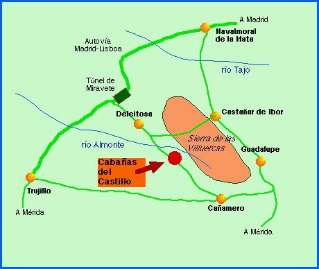Desde la población de Navalmoral de la Mata, en la N-V y en dirección Trujillo, se pasa por Almaraz y el puerto de Miravete. En este último punto hay que tomar el desvío hacia la población de Deleitosa. La carretera llega, entre sierras, a Retamosa y después a Cabañas del Castillo. Este último pueblo es pequeño y está protegido por dos muros rocosos que son, precisamente, las zonas donde se puede escalar.