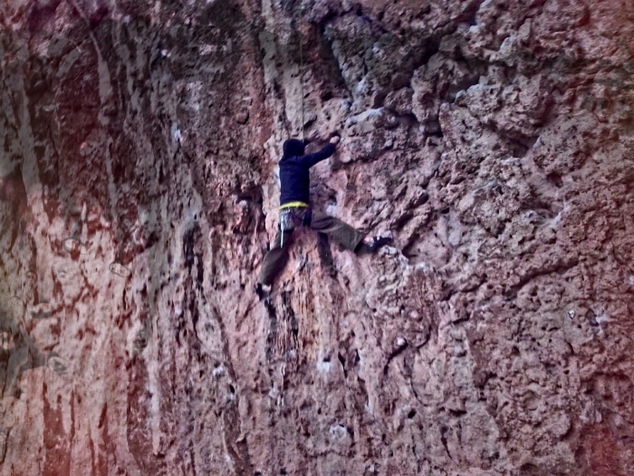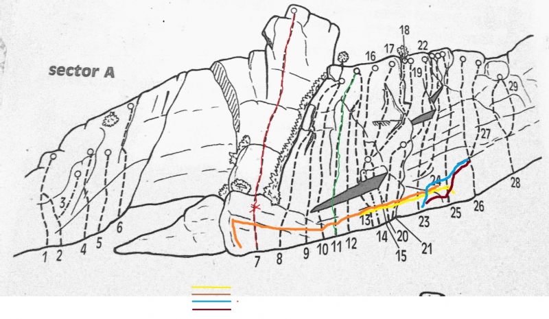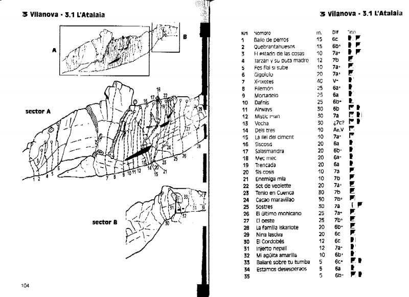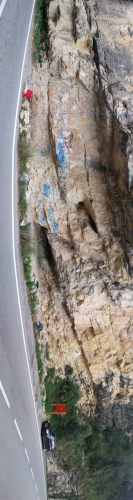 Zona de caliza con muy buen tacto, vías desde V a 8a/? bien equipadas, altura máxima 25m, sin aproximación, aparcas y tiras la cuerda al suelo.