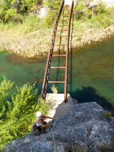 Zona de escalada de vías clásicas semiequipadas, en el cañón del río Cabriel, aguas abajo de la presa de Contreras.