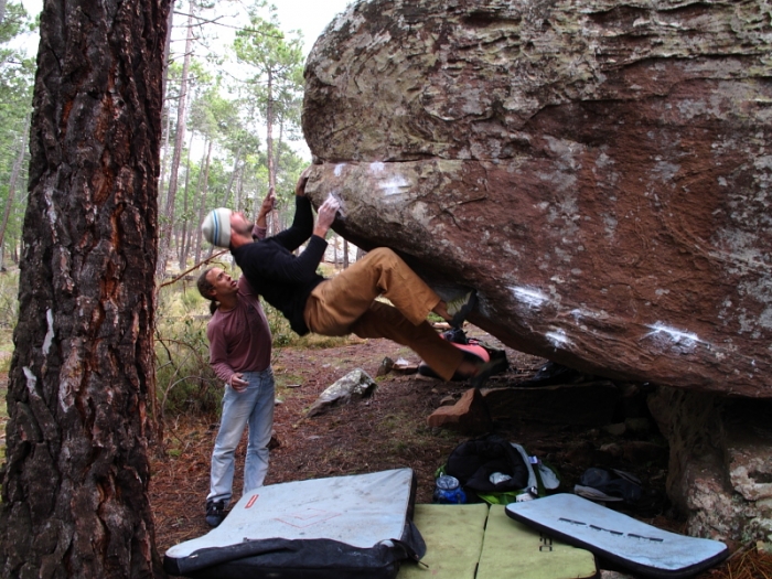 Cogemos el camino ancho (GR 10) que sale desde el parking 2 (techado) y lo seguimos en dirección al recorrido de pinturas rupestres. Pasaremos por dos desviaciones que no tomaremos. Pues después de la segunda desviación encontraremos una curva a la izquierda de 180º. El la mitad de la curva subiremos hacia la derecha monte a través por una vaguada. Unos 500 o 700 m más adelante encontraremos una hilera de piedras a nuestra derecha como si fuera un muro. Al final de esta hilera hay un techo muy característico con un 7c+/8a (Zatoichi) y un 7a (Máximo exponente) a su izquierda. Es a partir de aquí donde empieza el sector Valle de la Madera... Suerte!!!
