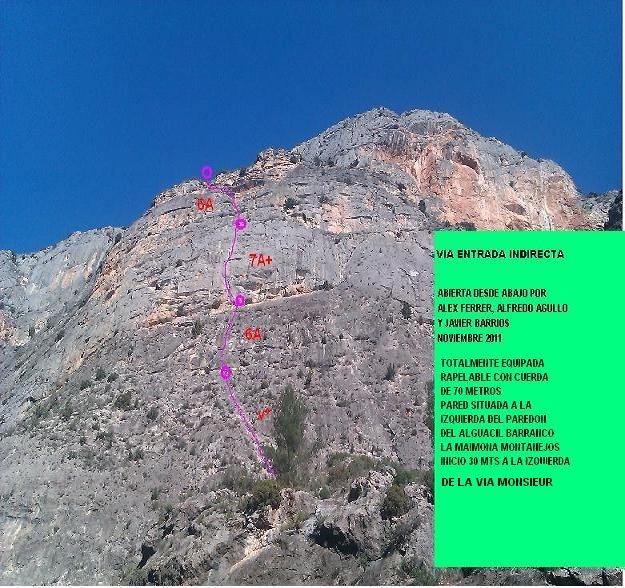 Este largo recorre un paño de roca de máxima calidad con diversidad de formaciones. Comienza con unos pasos hacia la izquierda, remonta una placa ligeramente desplomada que se va transformando en un pequeño diedro hasta llegar a un desplome que sortea por su izquerda; unos duros pasos en travesía a la izquierda hasta alcanzar una fisura que conduce a otro pequeño desplome que sale a una placa. Tras éste baja la dificultad hasta alcanzar la reunión.