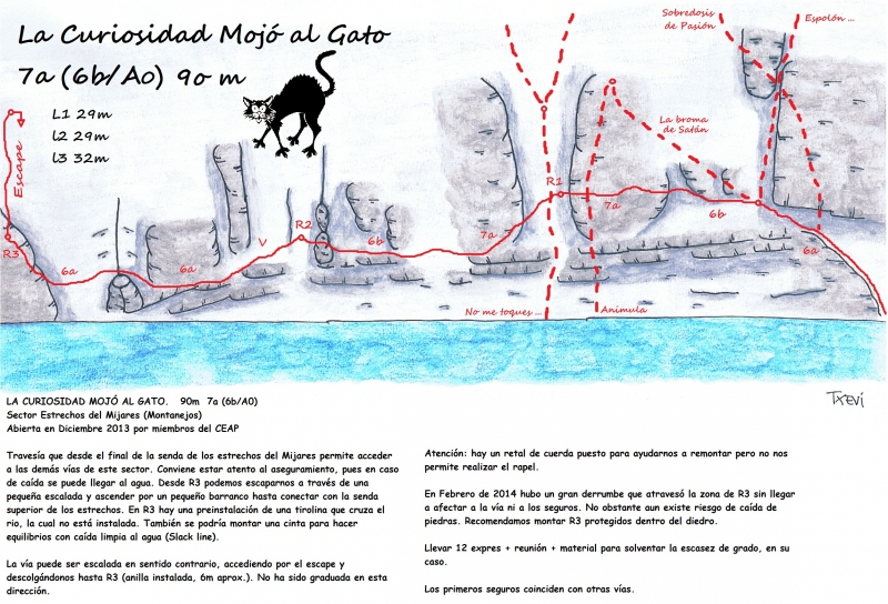 En Febrero de 2014 hubo un gran derrumbe que atravesó la zona de R3 sin llegar a afectar a la vía ni a los seguros. No obstante aun existe riesgo de caída de piedras. Recomendamos montar R3 protegidos dentro del diedro.