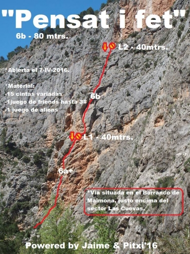 A vista | 1 | Gran descubrimiento, gracias al titan de Pau por abrir la vía y poder disfrutar de ella, segundo largo un diedro espectacular, le faltan repeticiones para limpiar la vía, os animo a que probéis esta joya en el barranco de la Maimona |