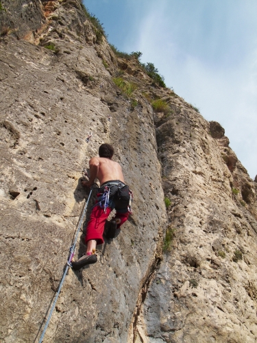 Placa, placa, placa... Las tres primeras chapas son muy plaqueras y le dan el grado a la vía; luego continua muy disfrutona. Muy recomendable.