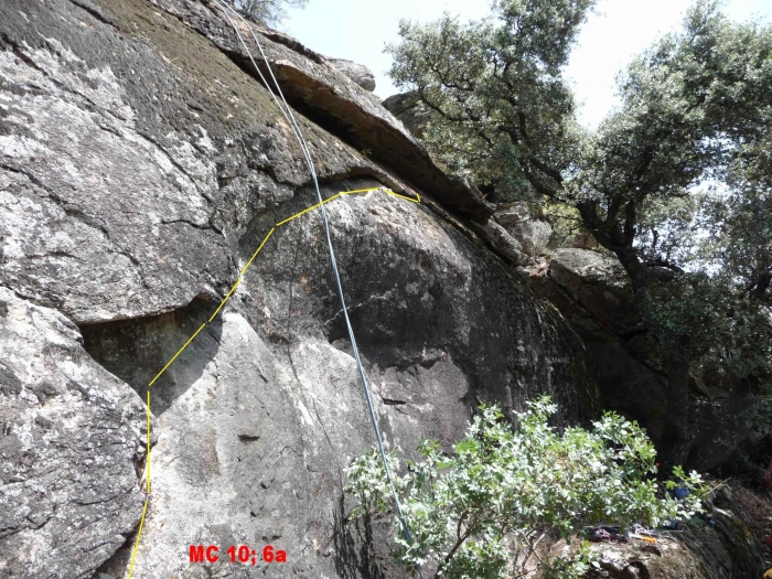 Subiendo al tercer escalón desde el segundo por el lado del arroyo encontraremos esta vía de travesía en fisura bavaresa, que también puede ser escalada íntegramente con friends. Ideal para practicar clásica.