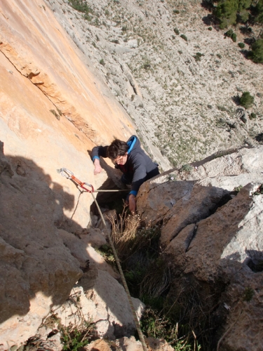 En este largo los seguros alejan algo más que los anteriores y habrá que ir con cuidado de no tirar piedras ya que encontraremos algunas sueltas. Aún así resulta muy disfrutón.