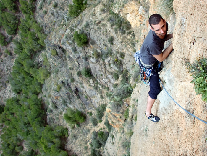 Precioso largo de placa que desde abajo aparenta mucho más dificil de lo que resulta. Vamos encontrando canto allá donde lo necesitamos en una serie de pasos muy elegantes. Sólo por este largo ya vale la pena hacer esta vía.