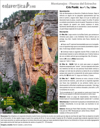 Información adicional: pertenece al sector conocido como "Fisuras del Estrecho". Encontrarás más información en la guía "Guía de escalada en Montanejos. Recorridos en grado francés. Autores: Juan Martín y Hugo Merle" y en "Escaladas en Montanejos. Autor: Ernesto López".