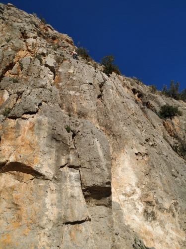 Punto rojo | 2 | Encadenada junto al segundo largo de crsis del afterpunk. Con una cuerda de 70 metros pueden hacerse y al bajar sobran 2-3 metros. |