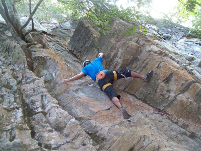 Esta vía comienza como un trepadero sencillo, luego de pasar la 4ta chapa, la pared se extraploma un poco y se hace lisa y sin agarres, sólo una protuberancia apodada "El honguito" por su forma de seta ayuda a ascender.